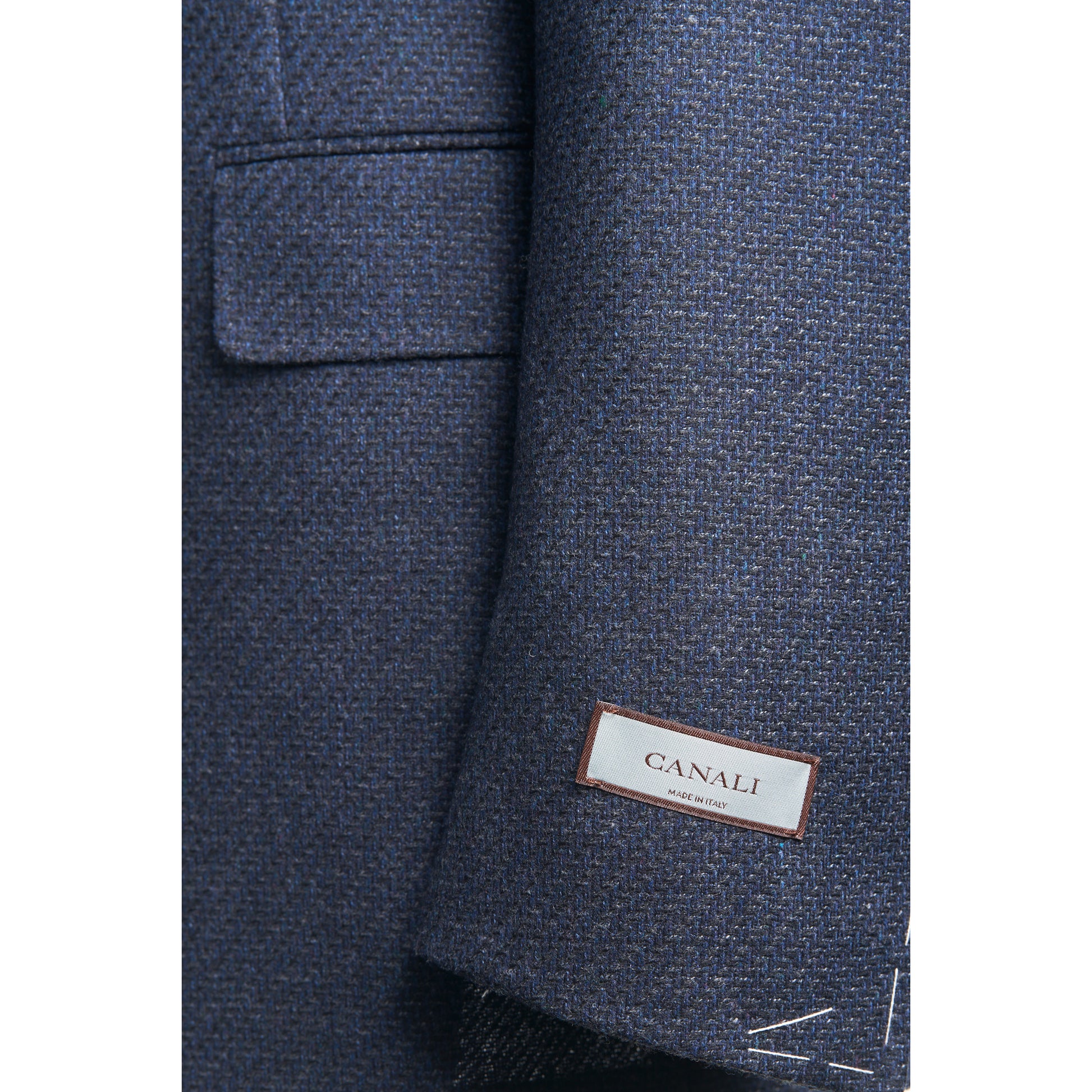 Canali Kei Model Sport Coat in Blue Wool Micro-Check