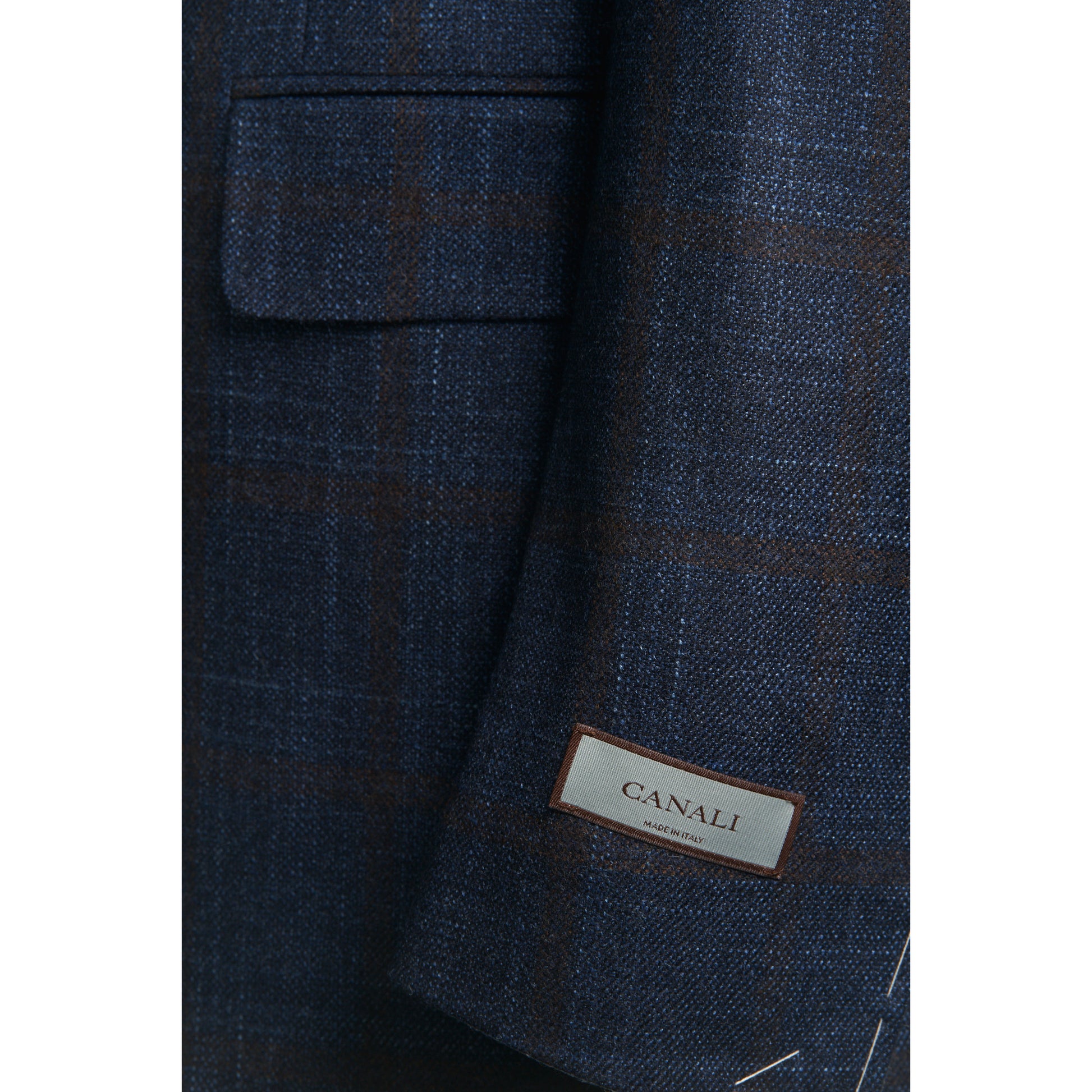 Canali Kei Model Wool, Silk & Cashmere Sport Coat in Blue with Rust Windowpane