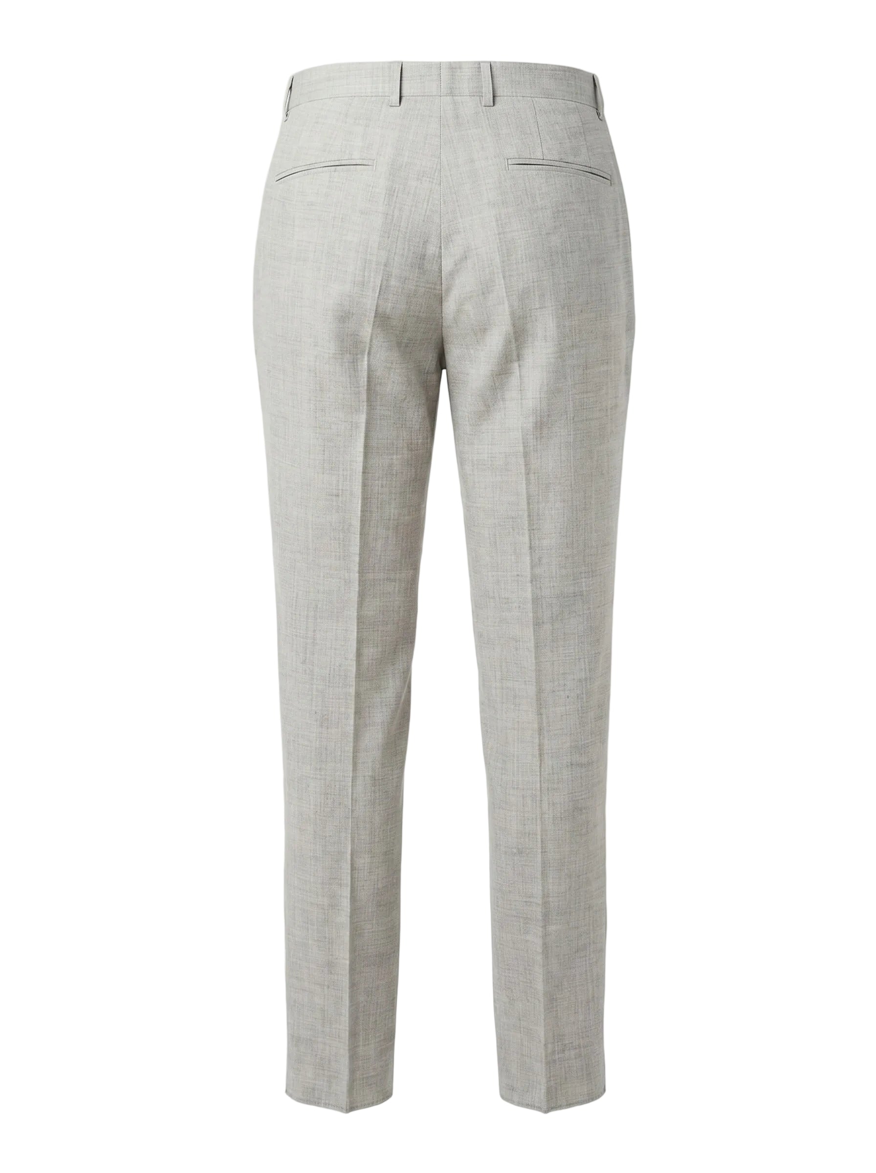 Design: Flat-front styling with slanted front pockets and rear welt pockets