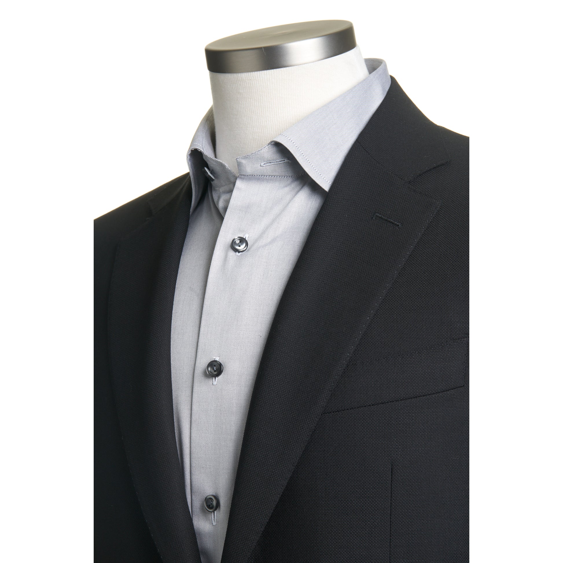 Non-functional four-button cuffs, double back vents.