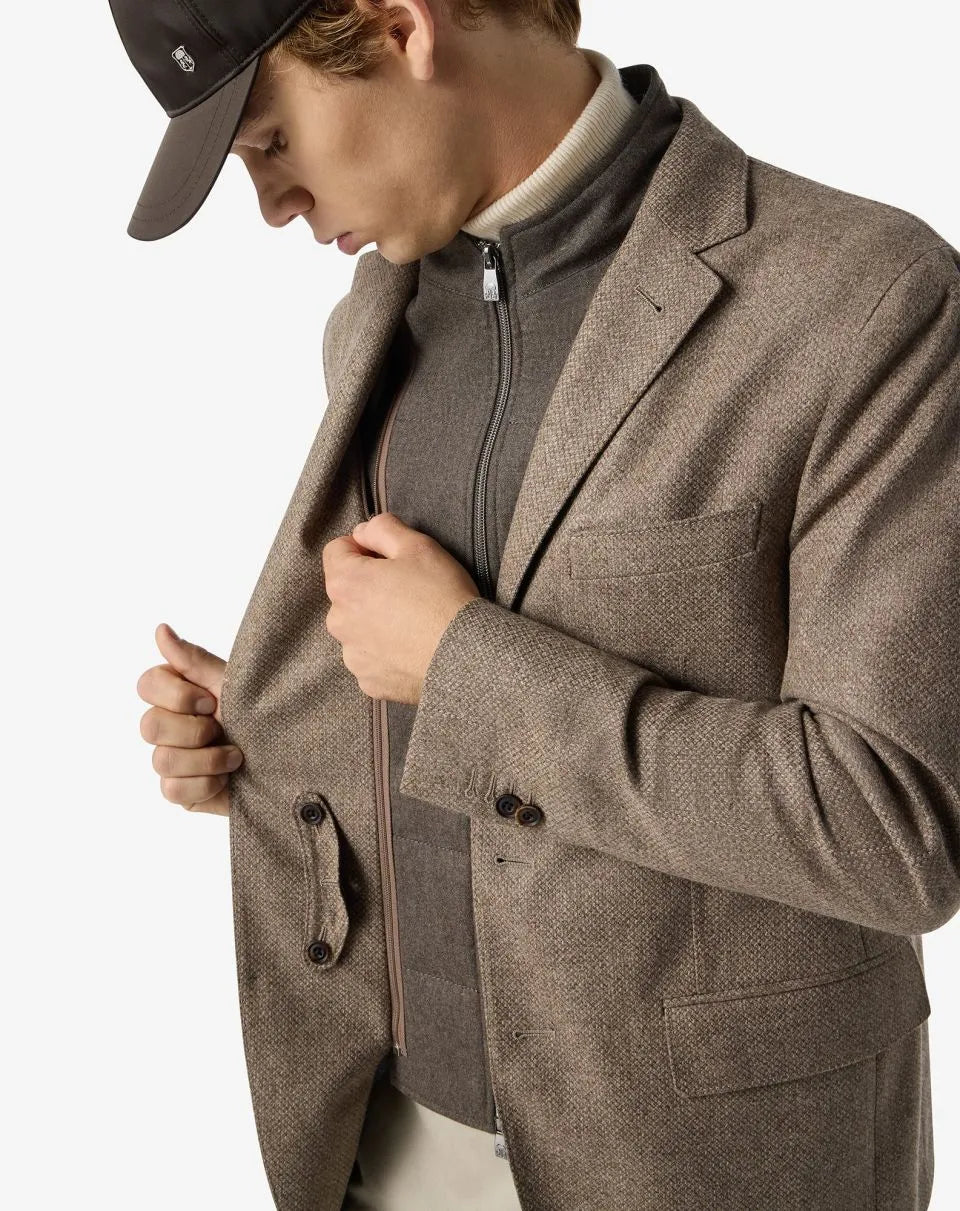 Corneliani ID Jacket Wool and Cashmere Jacket with detachable vest-Light Brown