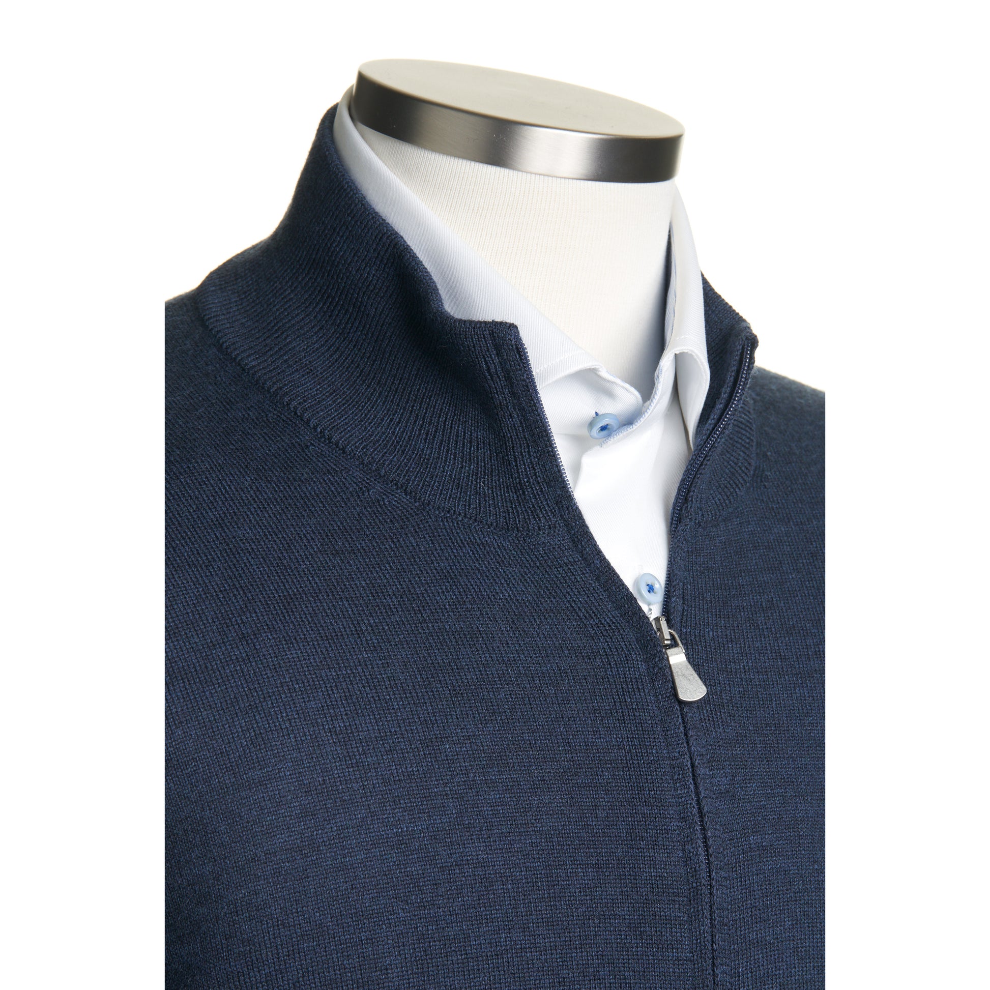 Gran Sasso Merino Wool Full-Zip Sweater in Blue