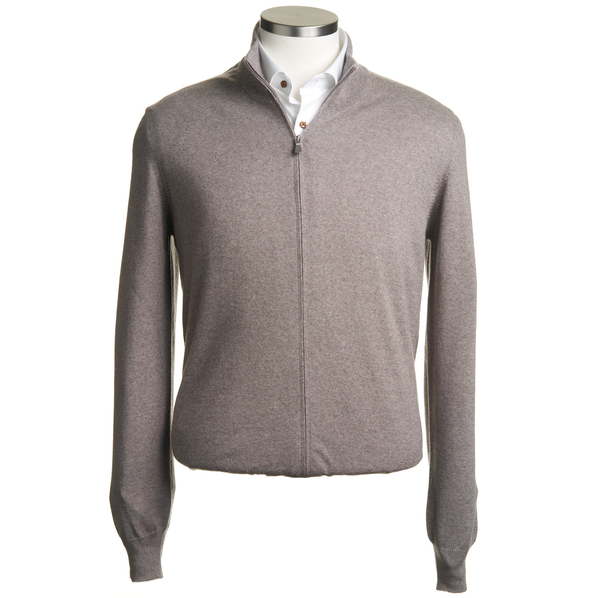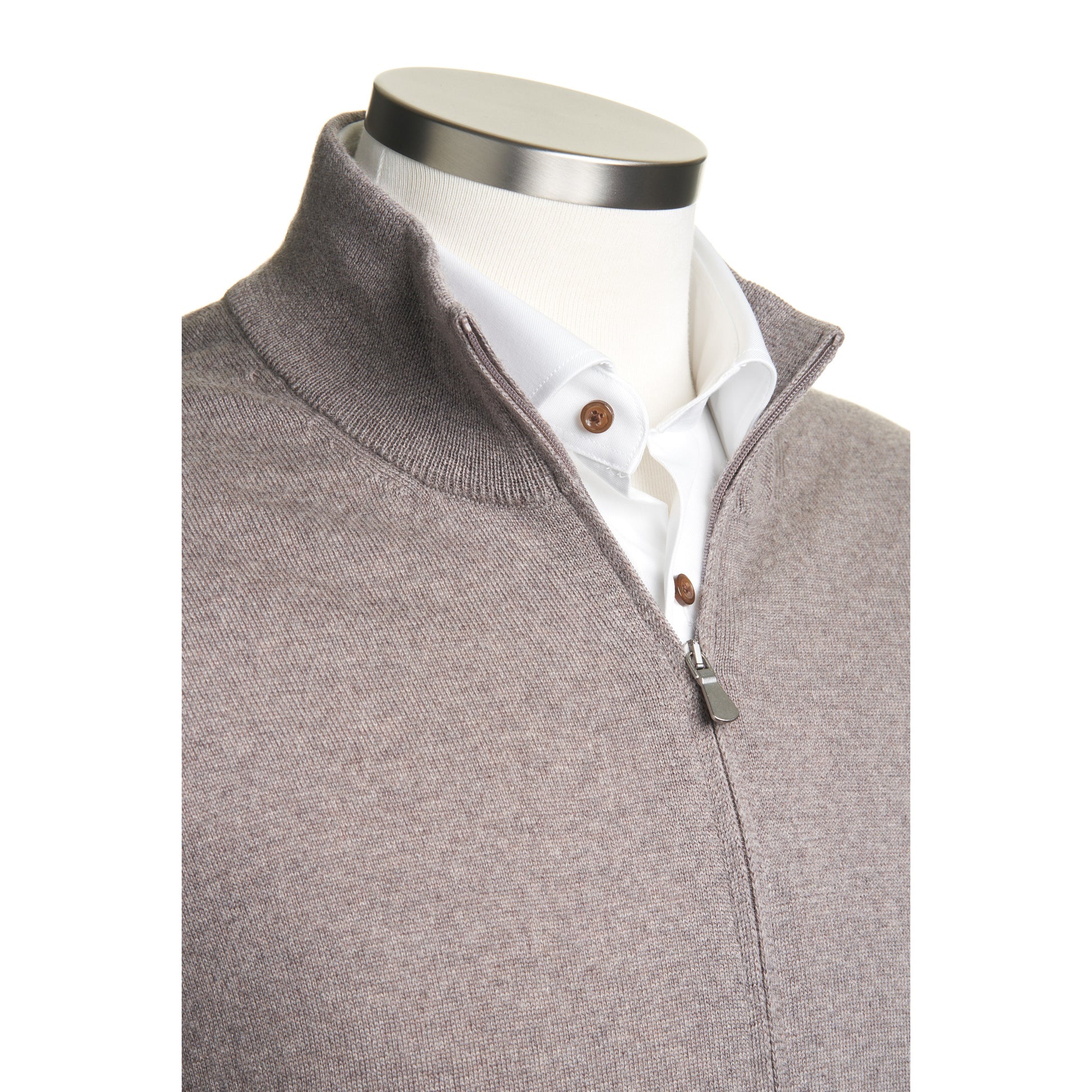 Gran Sasso Merino Wool Full-Zip Sweater in Mocha