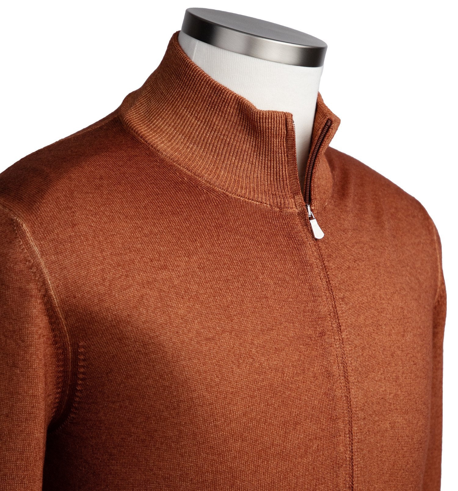Gran Sasso Merino Wool Full-Zip Sweater in Burnt Orange