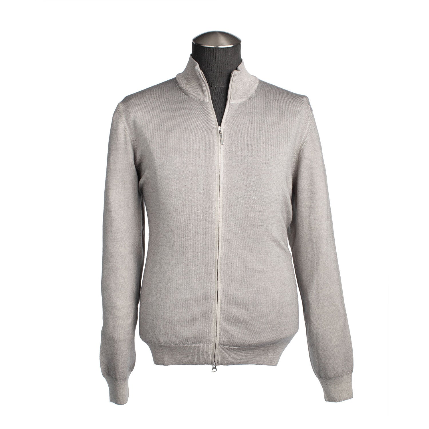 Gran Sasso Merino Wool Full-Zip Sweater in Sand