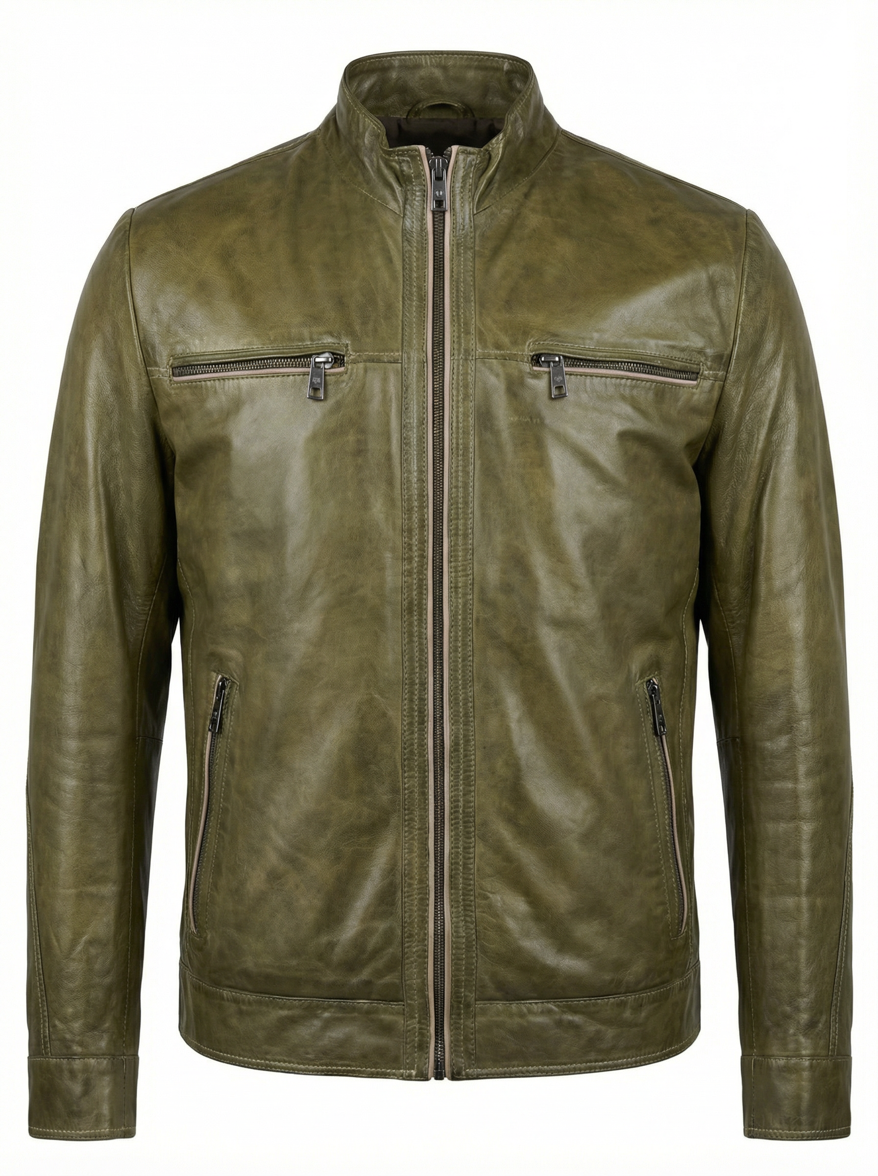 Milestone Lambskin Nappa Leather Jacket in Olive