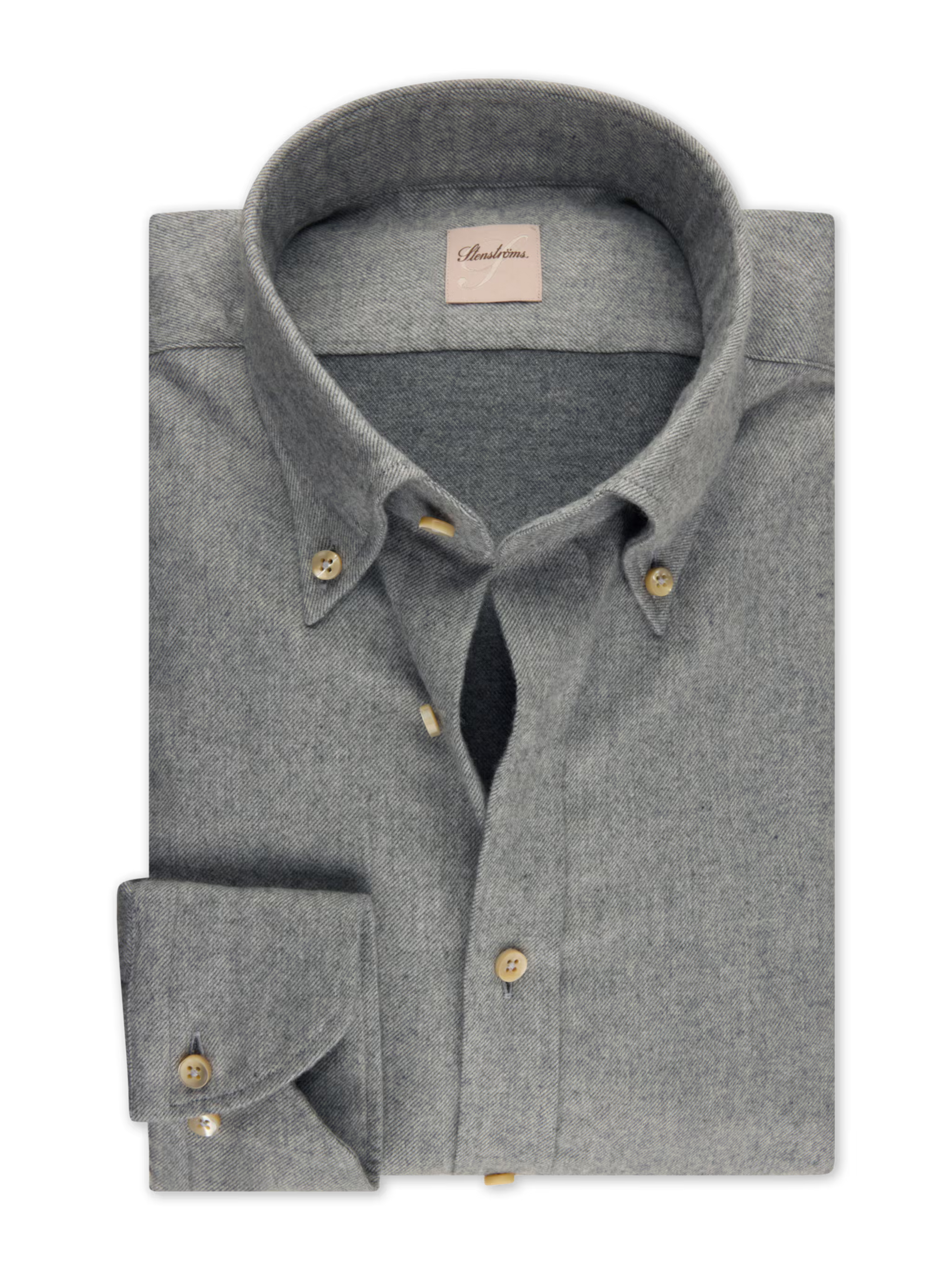 Stenströms Grey Luxury Flannel Sport Shirt in Regular Fit