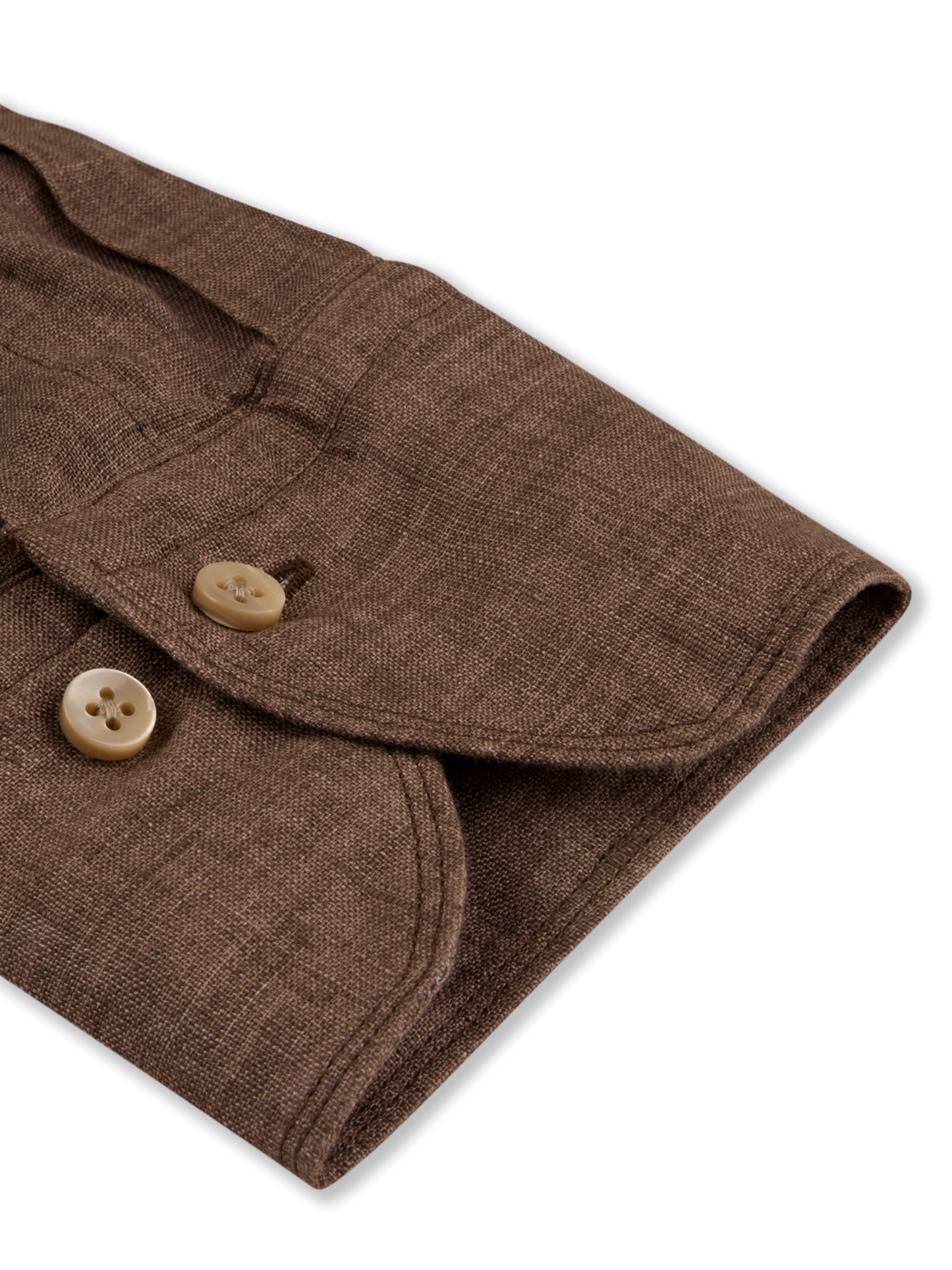 The Stenströms light brown linen shirt is a perfect blend of sophistication and comfort. Designed in a fitted body silhouette, it is crafted from breathable linen, making it ideal for warm-weather wear. Featuring a stylish cutaway collar, single cuffs, and elegant mother-of-pearl buttons, this versatile shirt offers a refined yet relaxed look. Pair it effortlessly with tailored trousers or chinos for a timeless and polished ensemble.