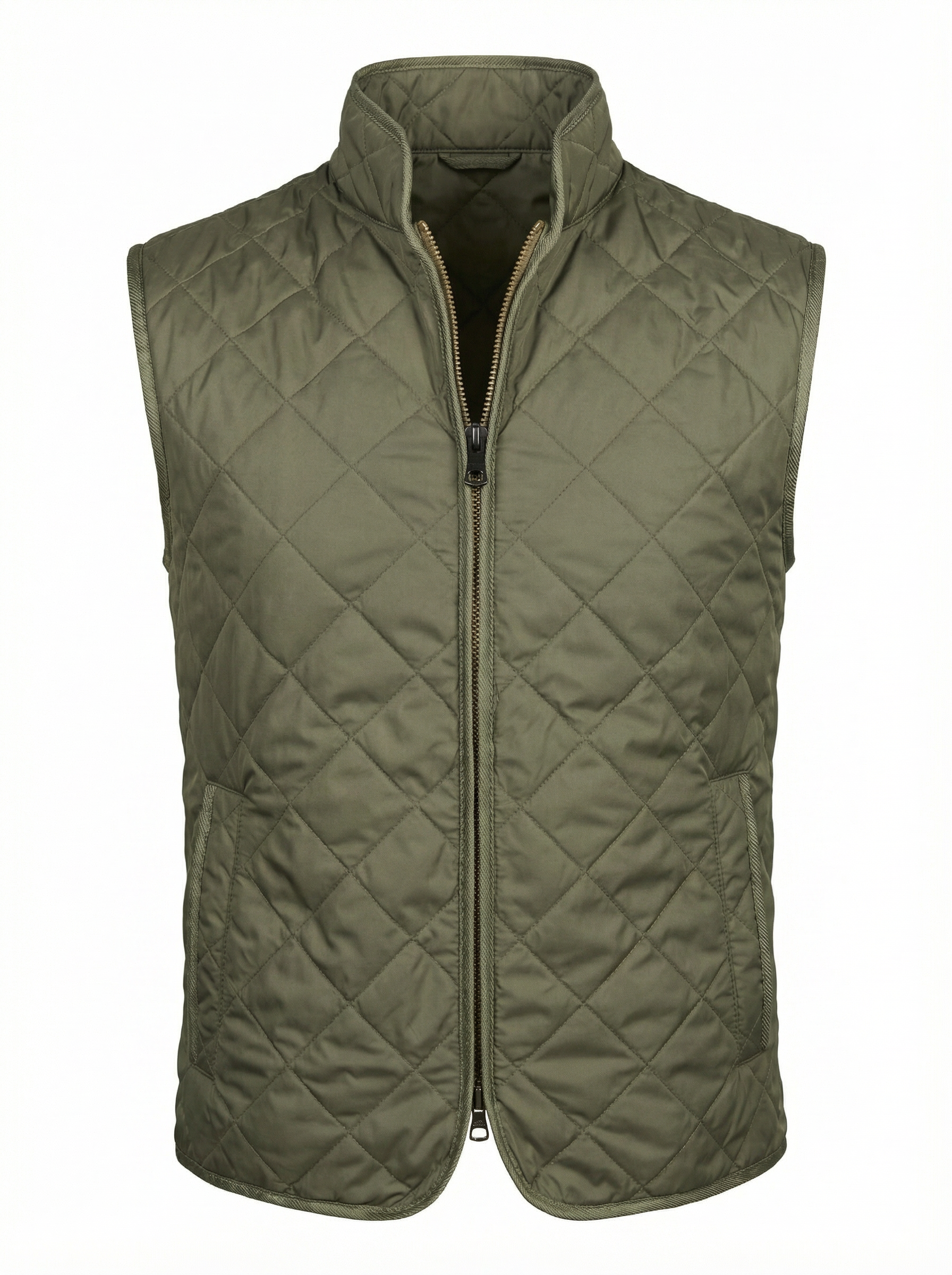 The Waterville Nylon Quilted Vest in Olive delivers lightweight warmth with a refined, modern look. Crafted from water repellent quilted nylon with tonal detailing, this vest offers versatile layering for cooler weather.