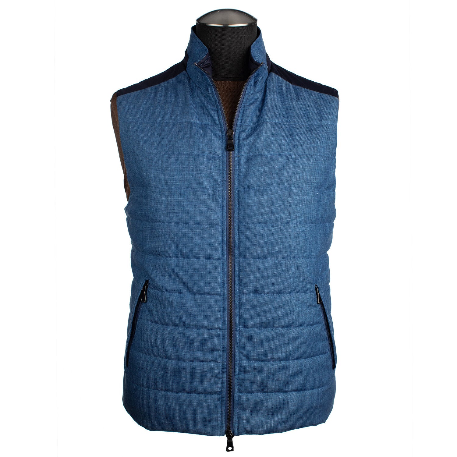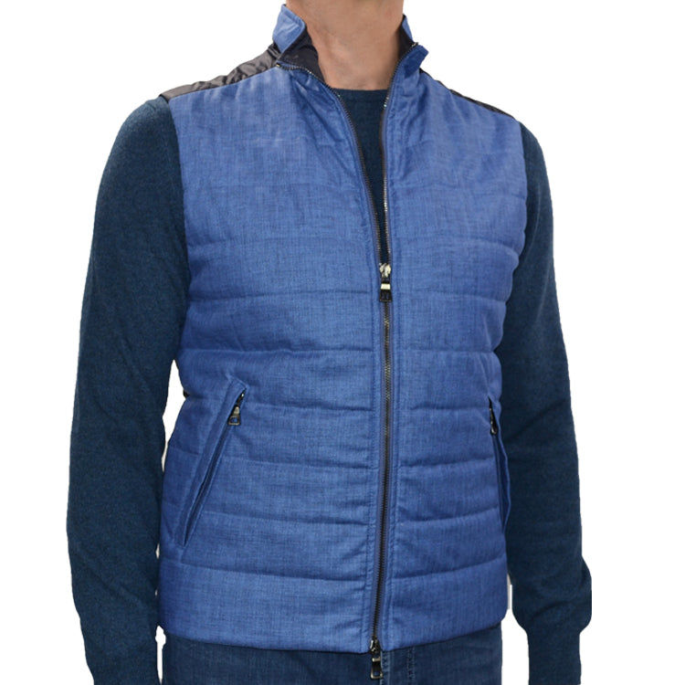 This vest by Waterville is the perfect combination of comfort, functionality, and style. Made in Italy from high-tech sporting ware, this durable, water-repellent vest is designed for outdoor adventure. It’s lightly quilted for warmth and endurance, and its viscose-linen blended exterior is the perfect all-weather fabric. One of our best-sellers, this Waterville vest is an essential component of any fall or spring wardrobe.